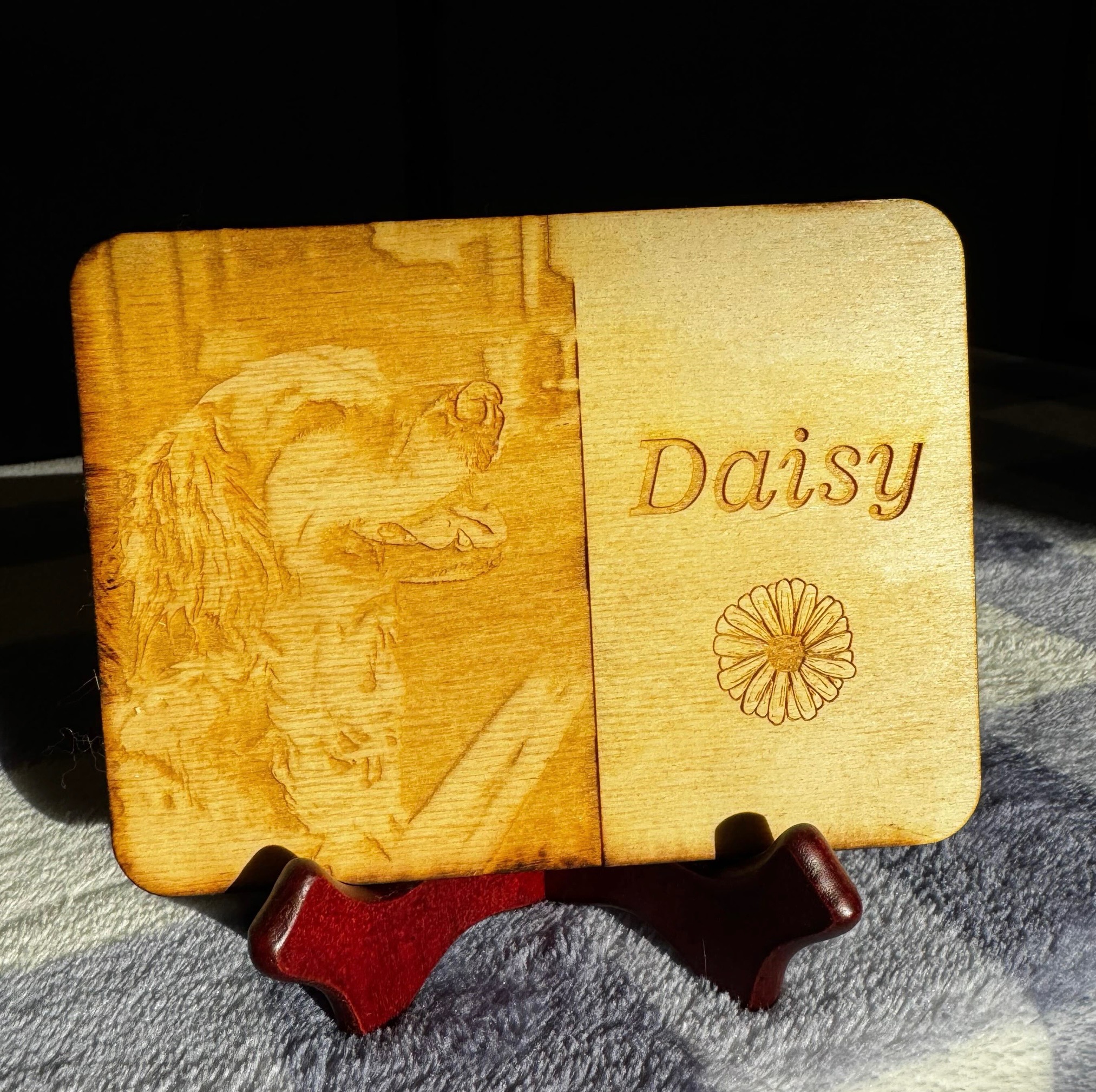 Engraved wooden paw print