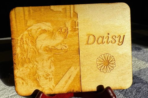 Engraved wooden paw print
